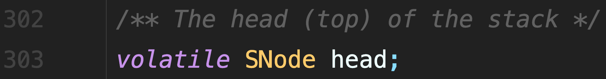栈的下一个,就是被当前栈压在下面的栈元素volatile SNode match