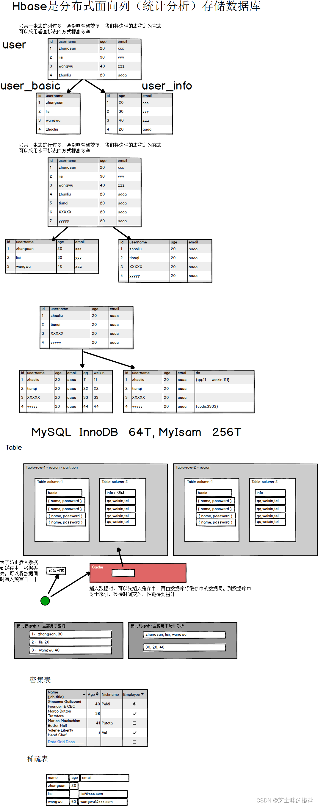 NoSQL开源数据库,其中的数据存储在行和列中。单元格是行和列的交集。 - 每个单元格值都包含一个"版本”属性,该属性仅是唯一标识该 单元格的时间戳。映射中的每个值都是不间断的字节数组