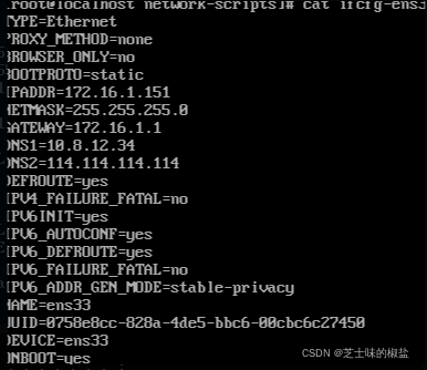 在/etc/sysconfig/network-srcipts下设置网卡配置ifcfg-ens33