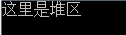 以上代码中使用了strcpy 往手动开辟的内存空间 p1 中传数据“这里是堆区”,手动开辟空间使用 malloc,传入申请开辟的空间大小 1024*1000000,在栈中那么大的空间必定会造成栈溢出,而堆本身就是大容量,则不会出现该情况。随后输出开辟的内存中内容,运行结果如下: