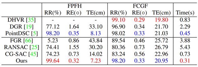 表2:3DLoMatch数据集上的结果