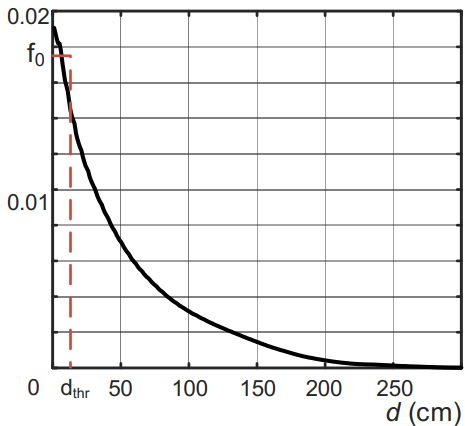 其中为一个单调递减函数,为两个匹配对之间的距离差。如前所述,由于刚体变换不改变任意两点的长度,因此两个内点之间的距离差理论应为0。然而,由于数据获取或点云采样时引入的噪声,不是绝对等于0,而只是可能小于一个阈值。为了方便推导,我假设在0到之间均匀分布,并且得到对应的概率密度函数如下: