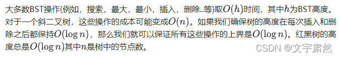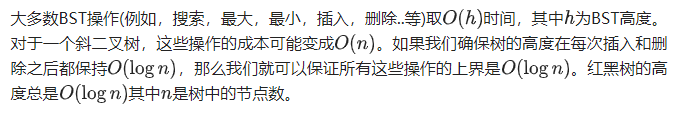 红黑树是一种自平衡二叉搜索树,其中每个节点都有一个额外的比特,这个位通常被解释为颜色(红色或黑色)。这些颜色用于确保树在插入和删除过程中保持平衡。虽然树的平衡并不完美,但它足以减少搜索时间,并将其维持在左右,其中是树中元素的总数。这棵树是Rudolf Bayer在1972年发明的。