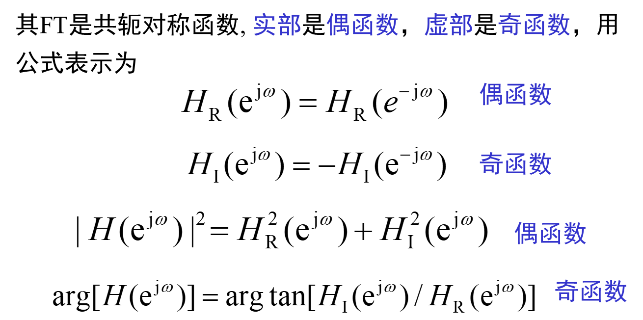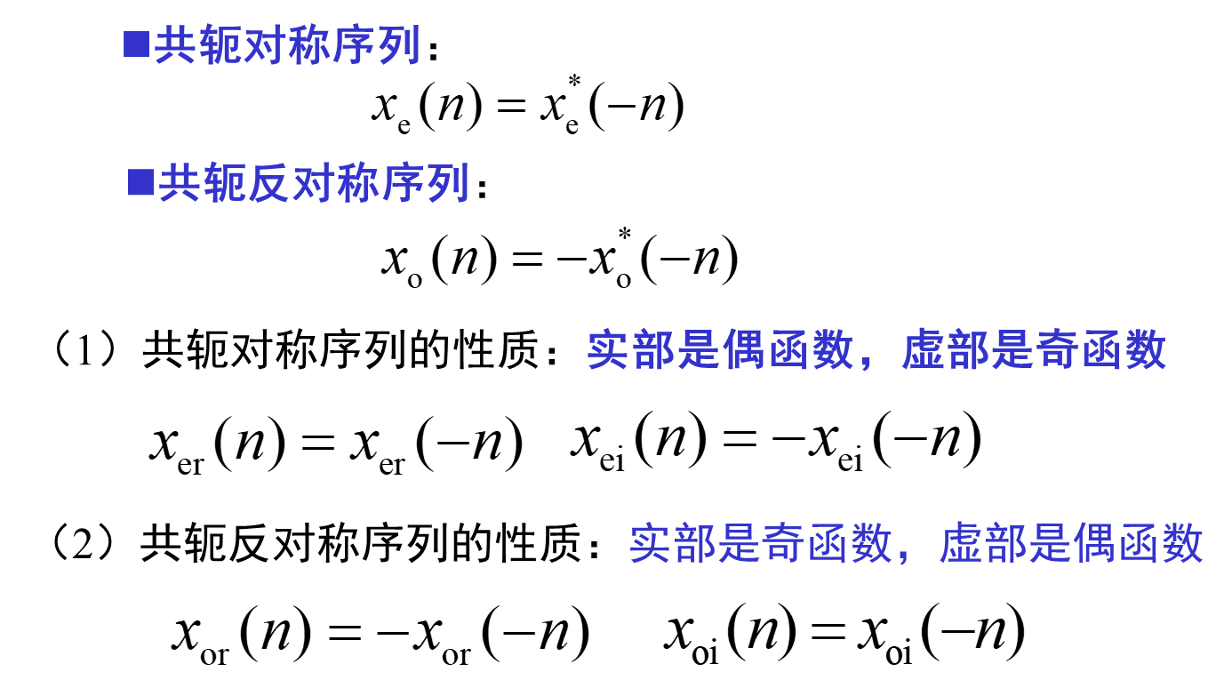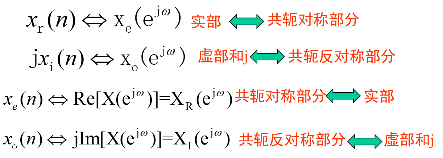 n序列的DTFT的共轭对称部分,其实部是偶函数,虚部是奇函数。n序列的DTFT的共轭反对称部分,其实部是奇函数,虚部是偶函数。