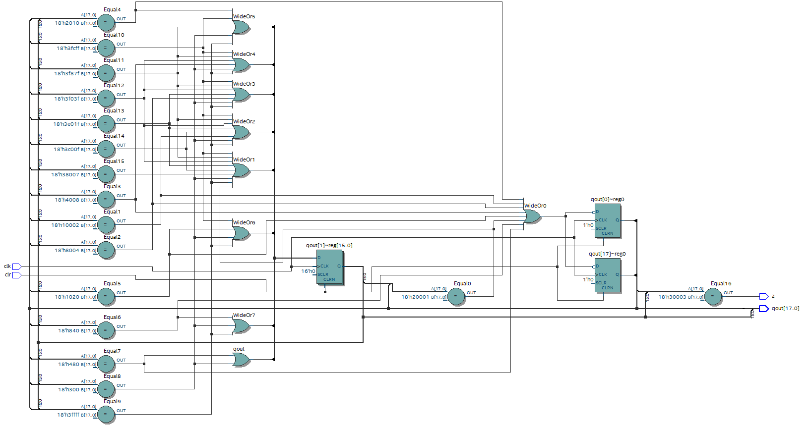 module denghua(clk,clr,z,qout);