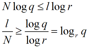 其中,q是信源S的符号个数,r为码符号集中的码符号数,l为定长码码长。