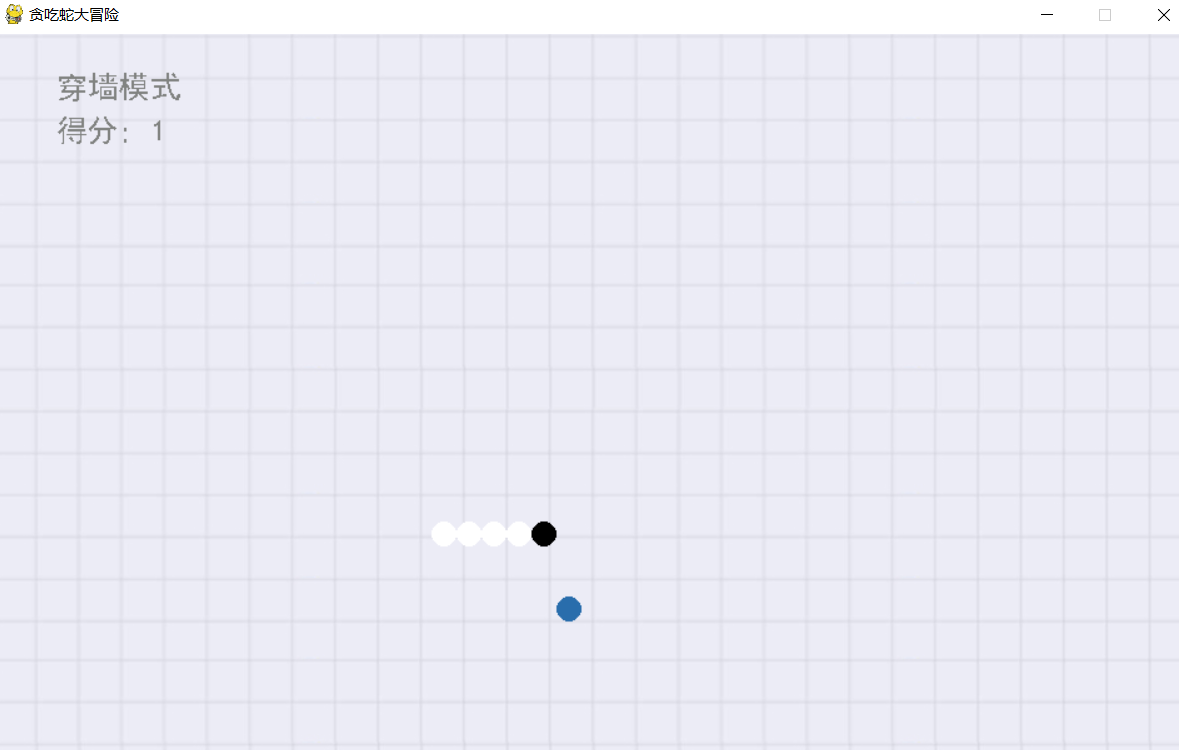 4. 在可穿墙模式中,贪吃蛇可以穿过墙面,但咬到自身后,游戏失败。
