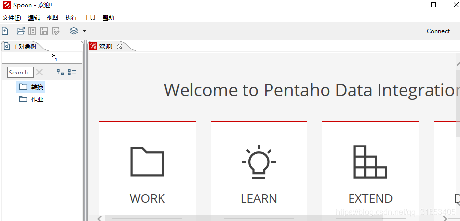 安装,关联成功后,进行“转换”,“加载”,“作业”的使用: