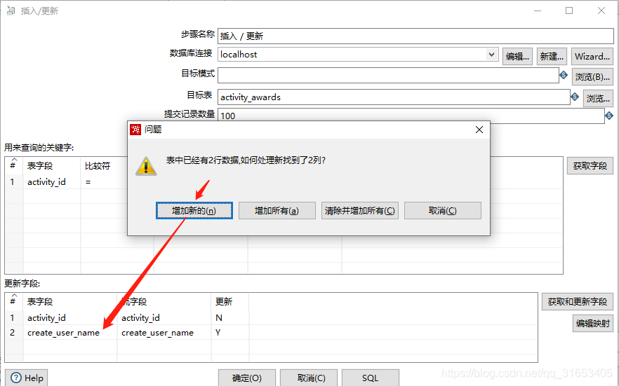 选择完成之后,点击左侧“输出-插入/更新”,进行将目标表的数据插入/更新到右侧区域,如图: