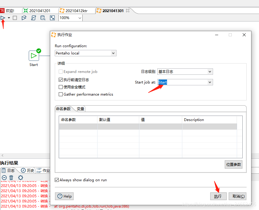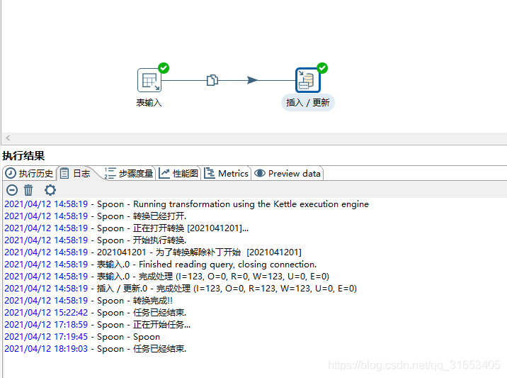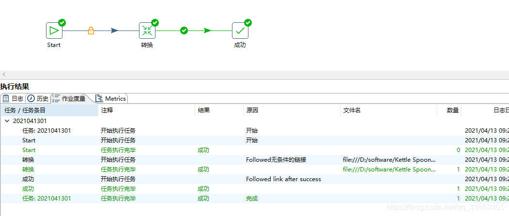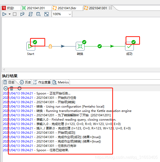 这样就是执行成功,如图,一定设置好ktr生成文件的关键步骤。