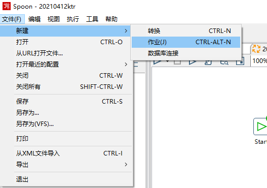 选择“文件- 新建-作业”,生成一个作业业务,如图: