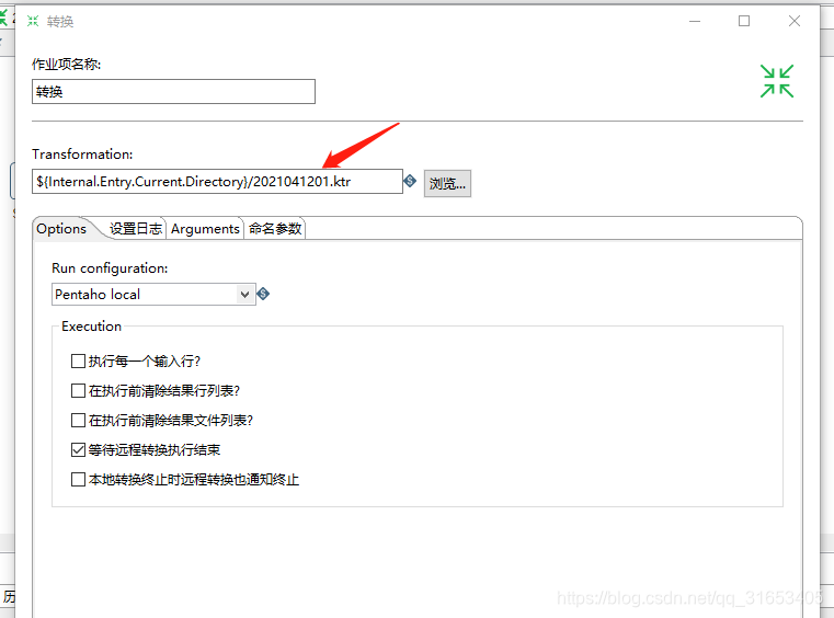 设置完成之后,进行确定保存,然后 双击“转换”,进行选择生成的ktr文件,如图: