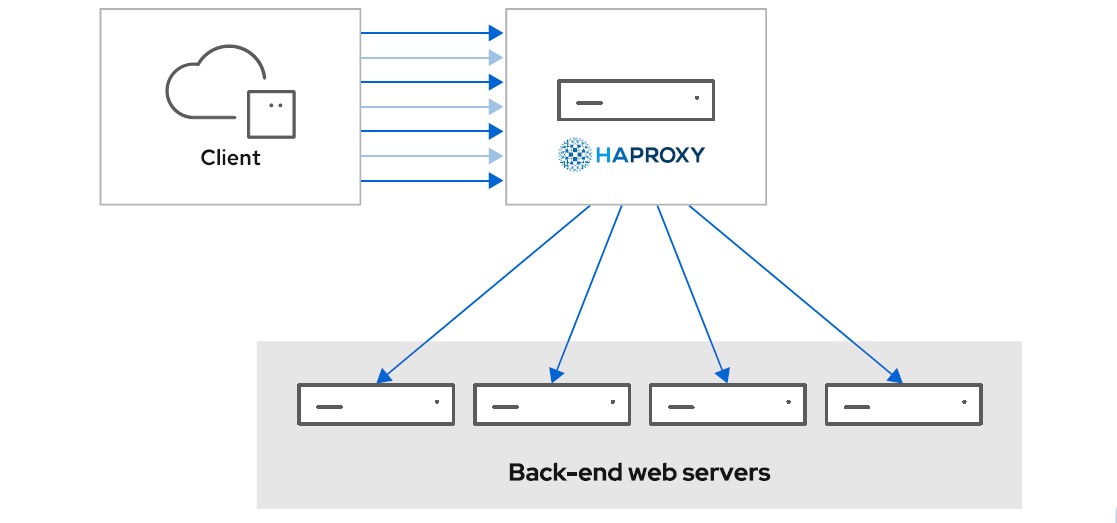 Web客户端通过HAProxy访问Web服务器。然后HAProxy在后端web服务器之间分发请求。通过这种方式,HAProxy将负载分散到web服务器群之间。HAProxy还可以监视后端服务器并停止向无响应的服务器发送请求。