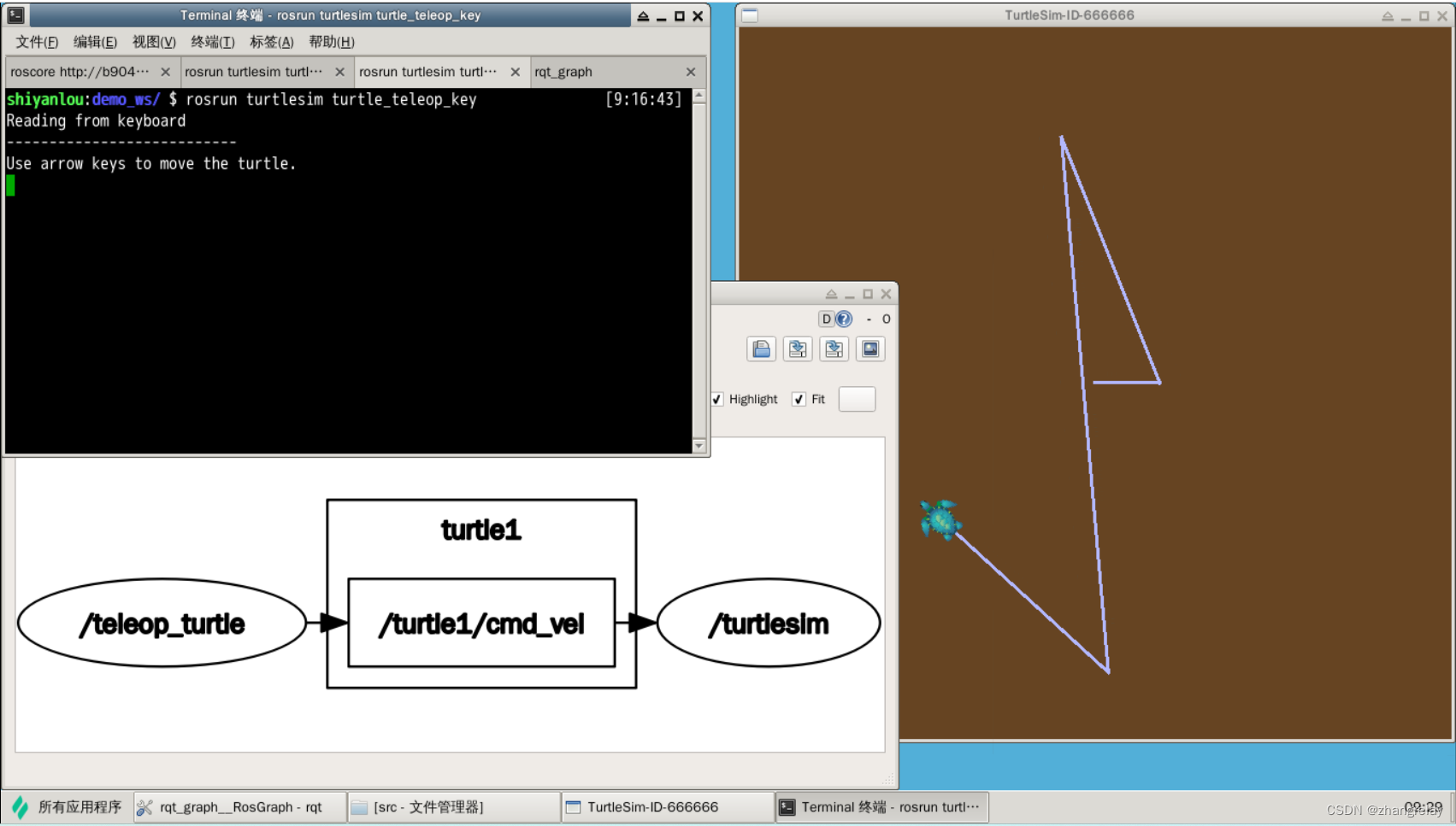 第二个(可视化小乌龟节点):rosrun turtlesim turtlesim_node