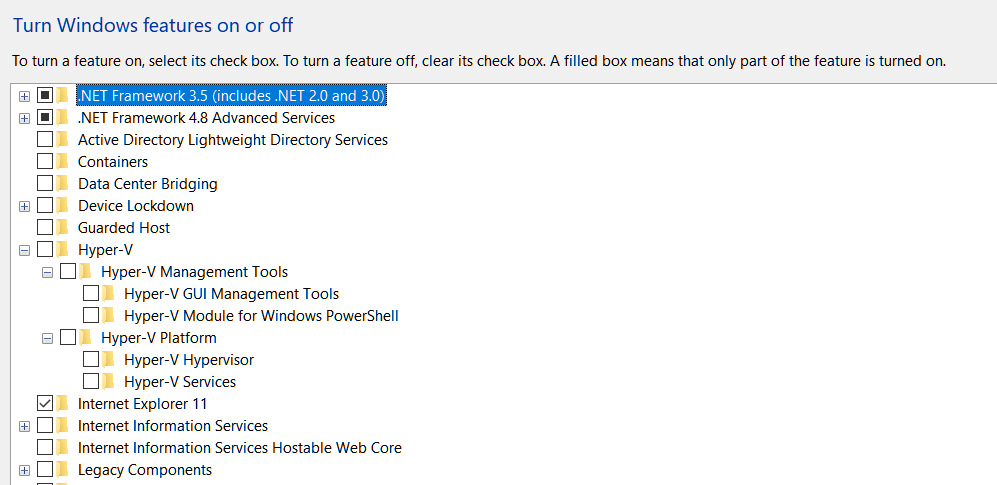 在Turn windows features on or off里,将Hyper-V相关的选项前的checkbox全部取消: