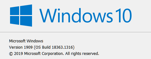 我的Windows10版本号为:version 1909,OS Build 18363.1316