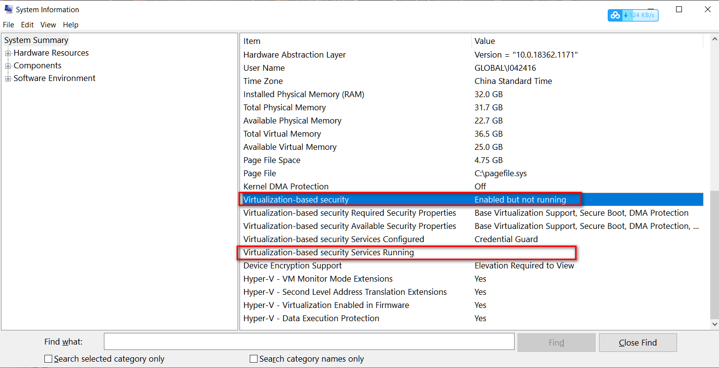 If using Windows 10 1909 or earlier, the system requirements are not met and therefore Virtualization Based Security has to be set as “Not Enabled”.