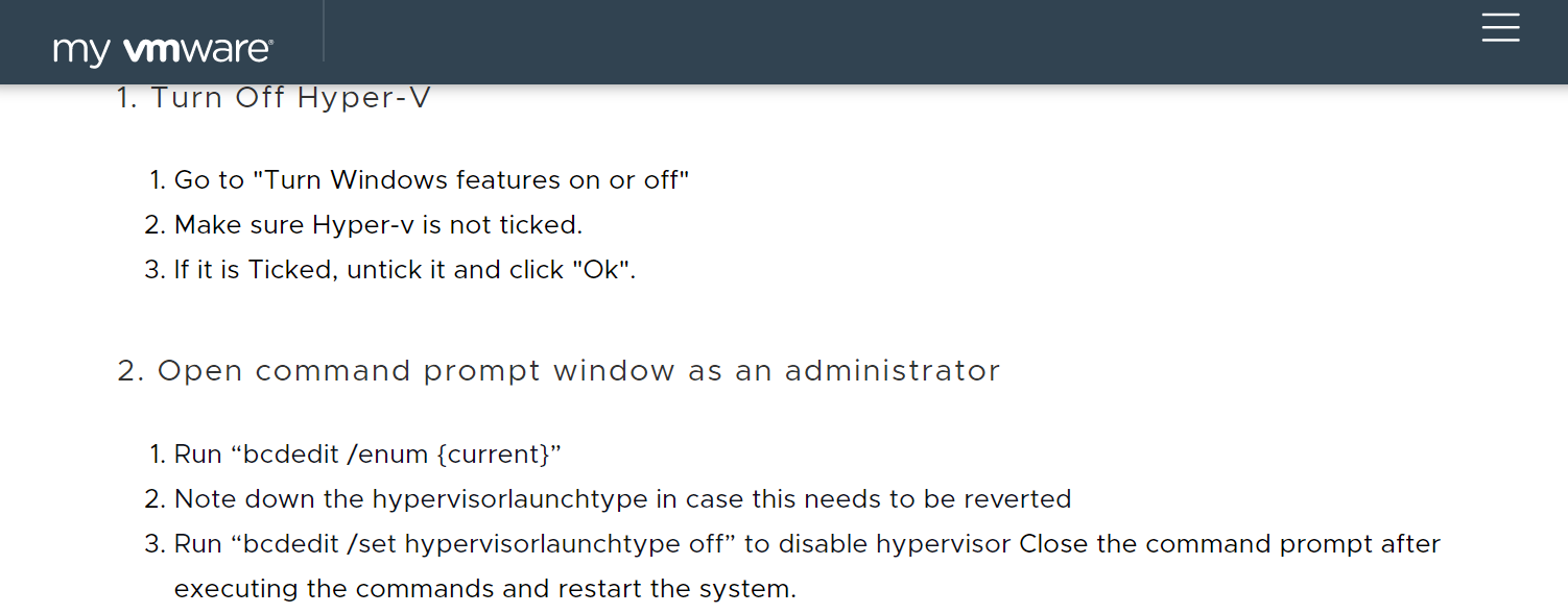 Disable Hyper-V in the Windows host, then launch VMware Workstation and power on VMs. Note that Windows host VBS will be disabled automatically if Hyper-V is disabled