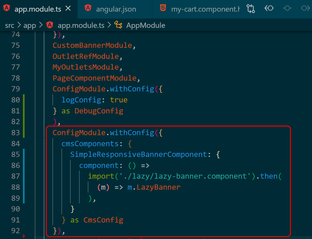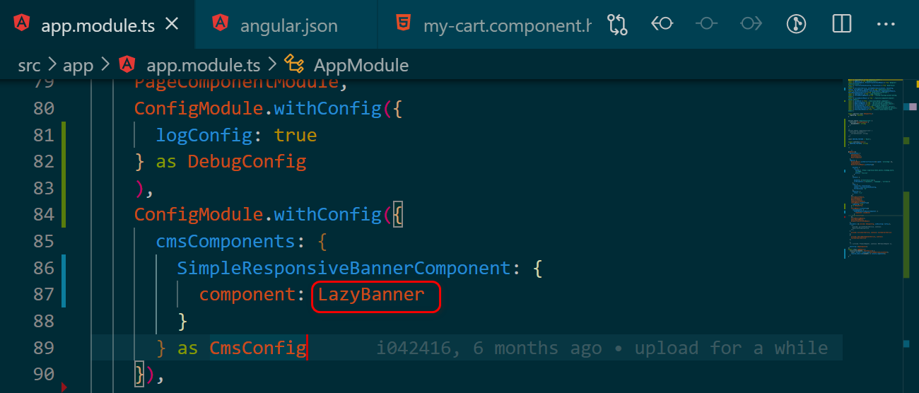 在app.module.ts 里启用我自开发的 LazyBanner 组件之后: