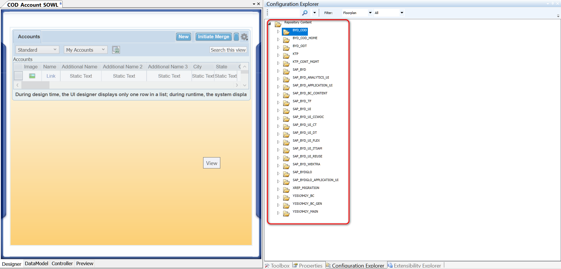 下面这张图是SAP Cloud for Customer UI Designer Xrepository里的UI模型列表,从中可以看到有不少的模型名称仍然带有BYD的前缀。