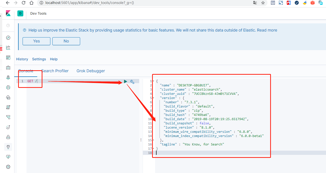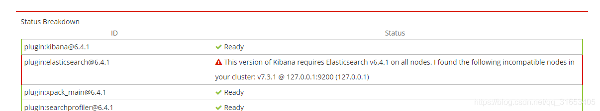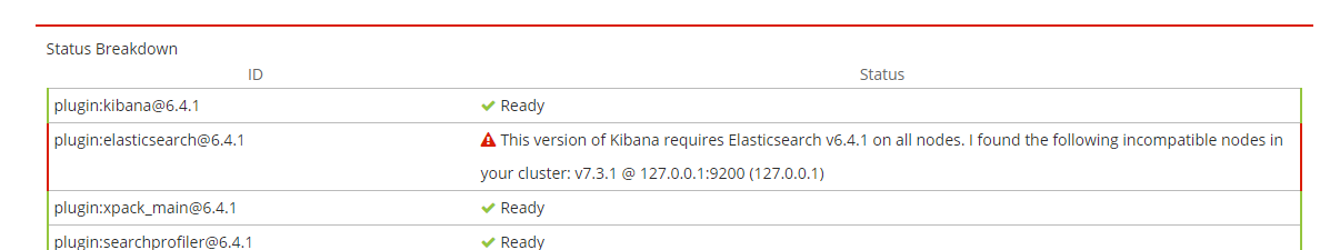 This version of Kibana requires Elasticsearch v6.4.1 on all nodes. I found the following incompatible nodes in your cluster: v7.3.1 @ 127.0.0.1:9200 (127.0.0.1)