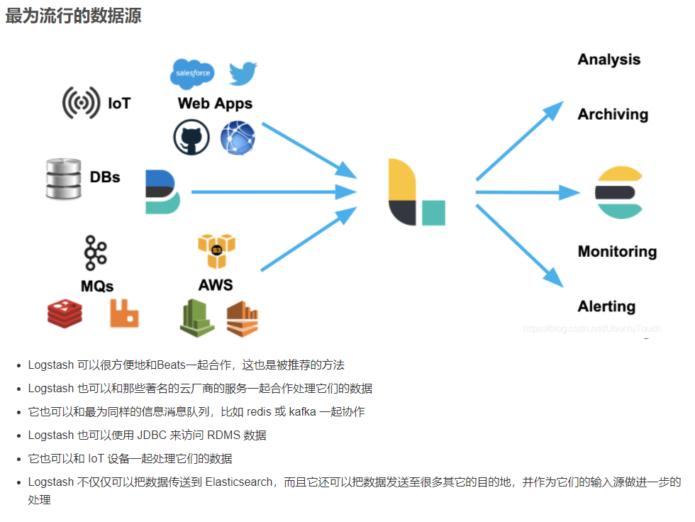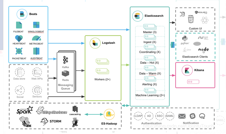 Elasticsearch 处于最核心的位置,它可以帮我们对数据进行快速地搜索及分析,