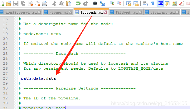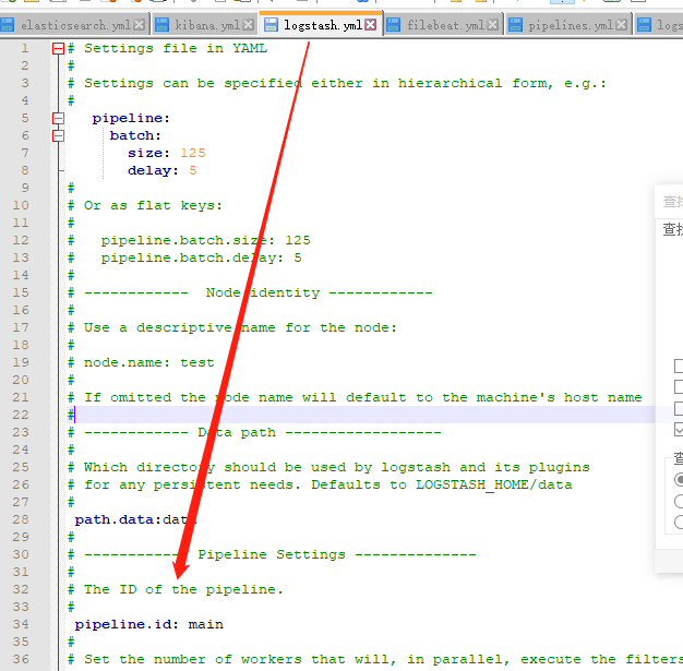 修改文件pipeline.yml文件内容,设置推送的logs文件路径: