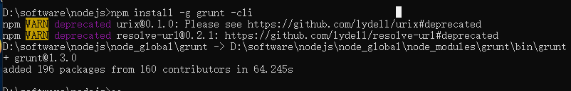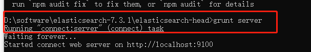 运行grunt: 在es-head文件夹下 进行 cmd 执行命令:npm install -g grunt -cli ,安装成功后,如图: