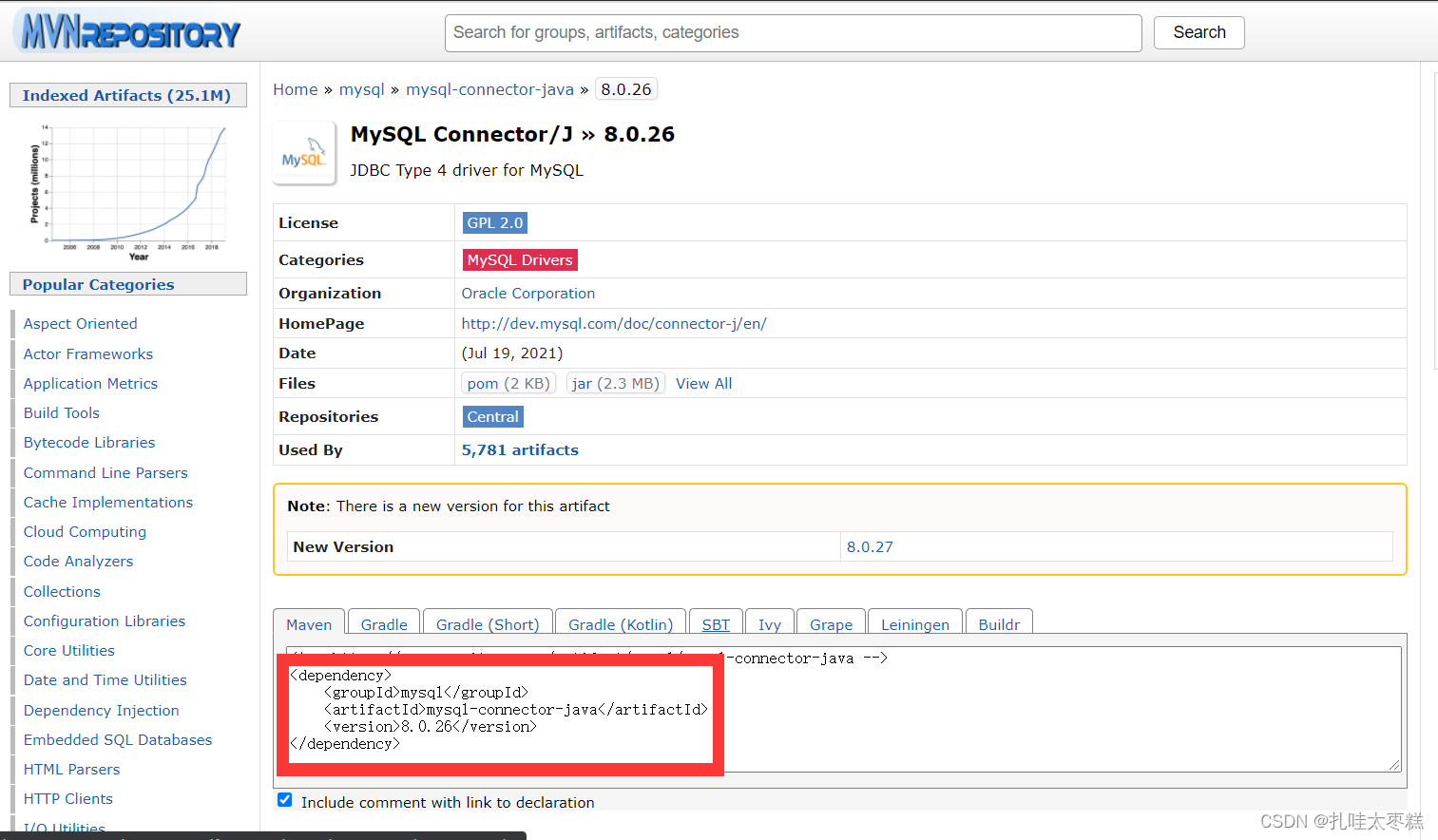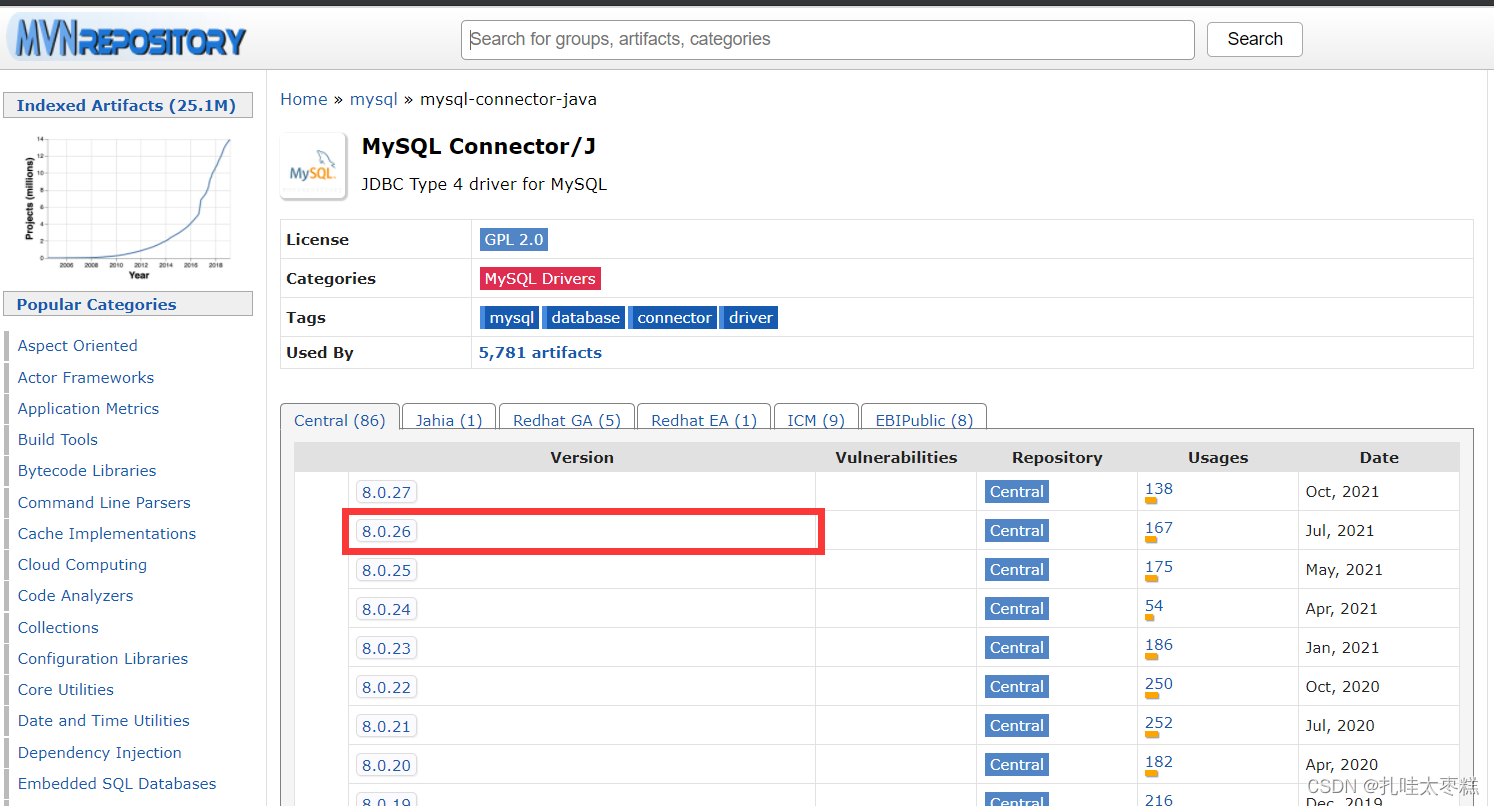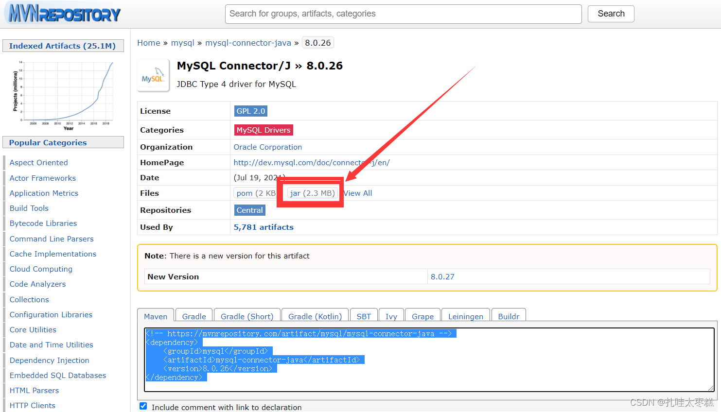 下面我会以mysql-connector-java-8.0.26.jar为例,教会你使用两种方式下载使用jar包资源