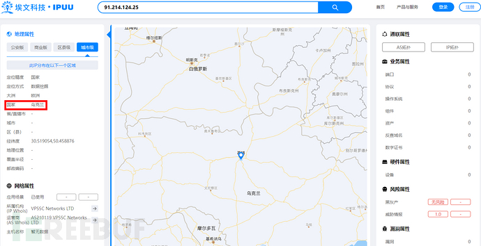 通过我们的IP(定位数据库)地理位置查找运行它,发现IP地址实际上是基于乌克兰的: