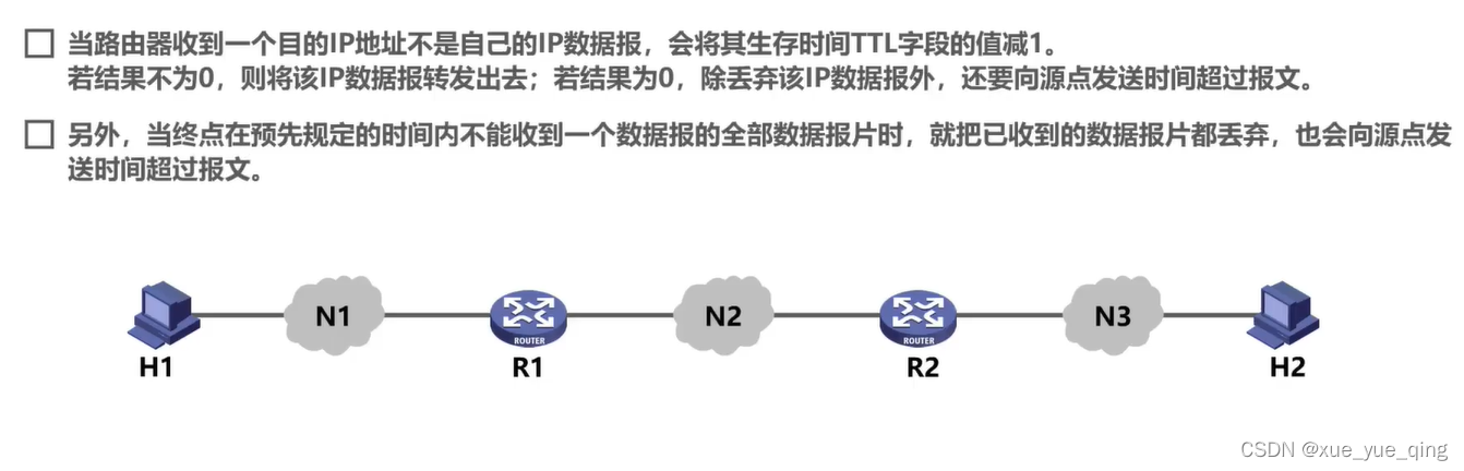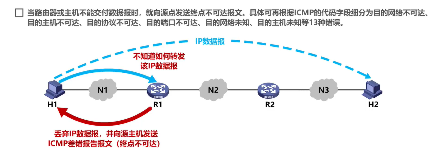 - 对ICMP差错报告报文不再发送ICMP差错报告报文