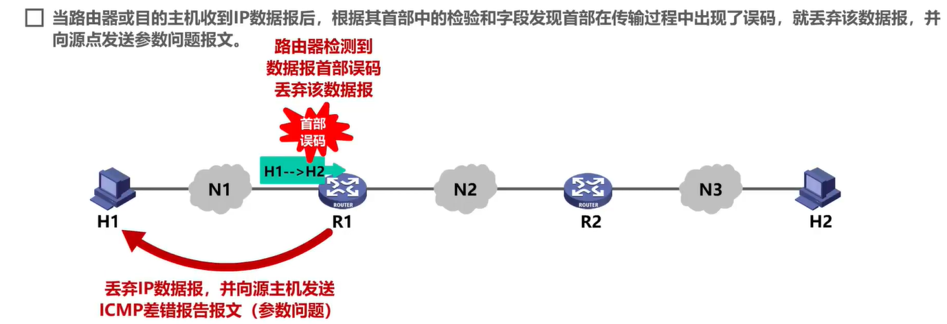- 对具有特殊地址(如127.0.0.0或0.0.0.0) 的数据报不发送ICMP差错报告报文