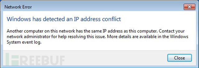 如果你将计算机置于与你使用相同 IP 池的另一个网络上的待机模式,然后将其带回家并重新连接到你的网络,也可能会发生这种情况。如果该 IP 已在你的网络上使用,你将看到 IP 冲突错误。