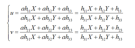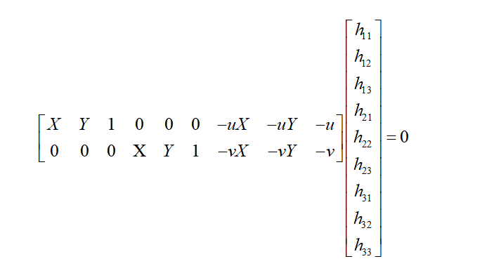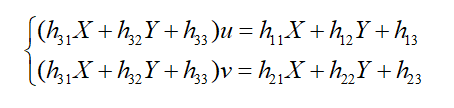 上述变化属于单应性变化,那么 即为单应性矩阵。并令 ,则有: