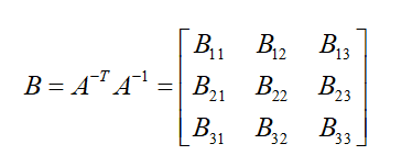 可以看出 , 是一个对称阵,所以B的有效元素只剩下六个(因为有三对对称的元素是相等的,所以只要解得下面的6个元素就可以得到完整的B了),让这六个元素构成向量b。