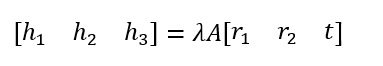 在进行张氏标定的时候,我们所选择的标定物是平面(往往是棋盘格),所以我们可以把世界坐标系构造在Z=0的平面上。然后进行单应性计算。令Z=0可以将上文公式转换为如下形式: