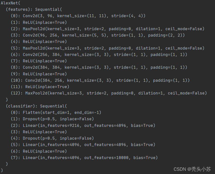 我们可以打印出来看一看我们自己创建的网络模型,如下图。可以看出和前文的结构是一致的。