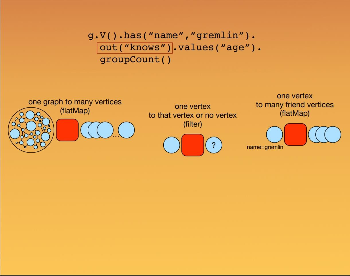 Gremlin 遍历由一系列步骤(可能存在嵌套)组成,每一步都在数据流上执行一个原子操作