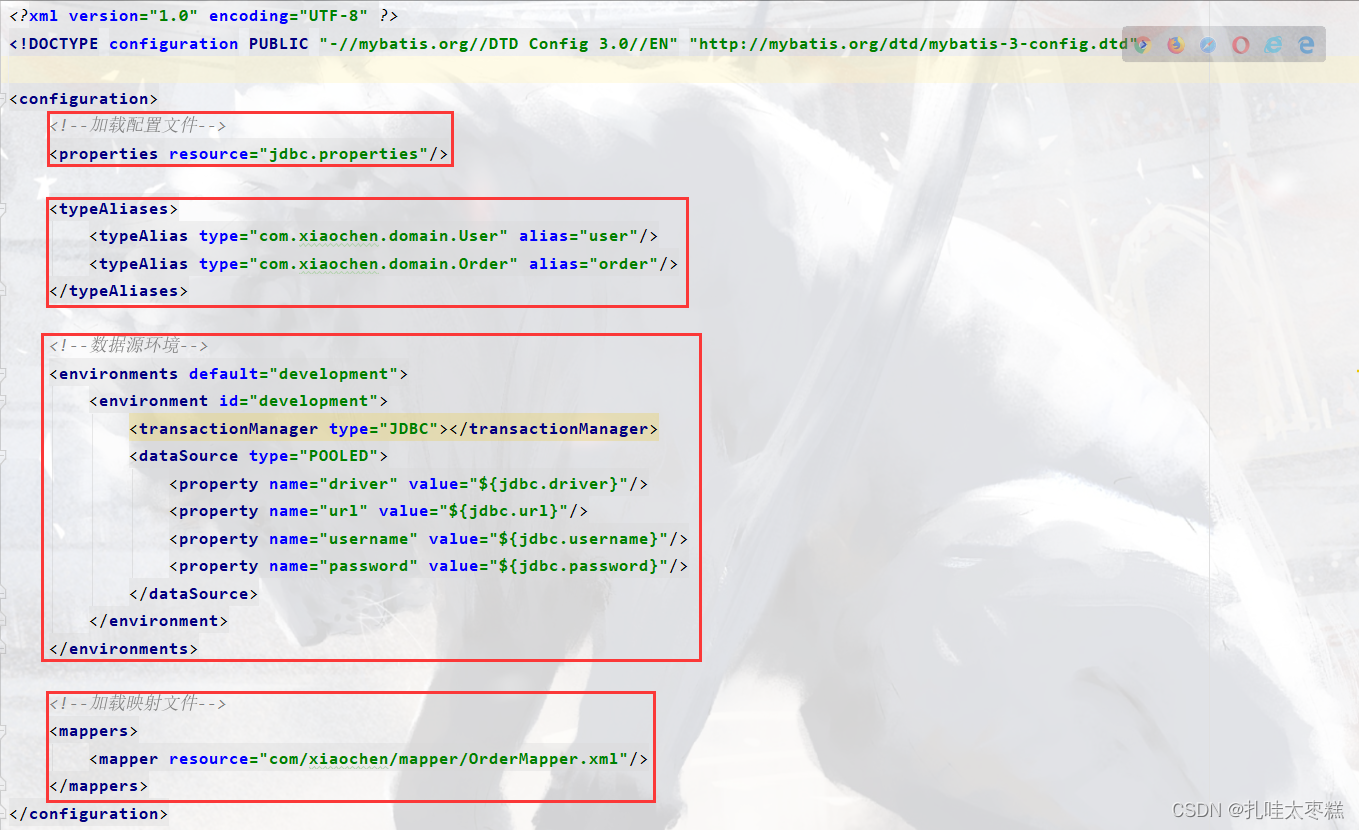 核心配置文件中的标签配置是遵循以下顺序的,如果顺序改变的话会导致报错,且红框框住的是相比较而言重要的,且前面都讲过