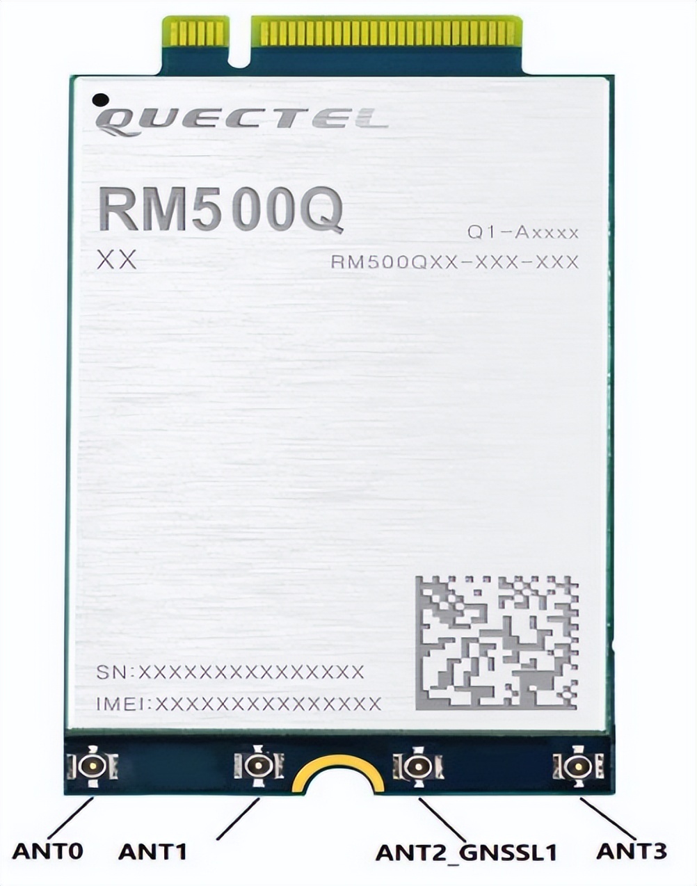 请将5G模块(移远RM500Q)上的天线接口ANT0、ANT1和ANT3连接5G天线,ANT2_GNSSL连接GPS天线,将5G模块安装至M.2转USB转接板。评估板不接网线,使用USB转Type-C数据线连接评估板的USB1 DRD 3.0接口和M.2转USB转接板的USB Type-C接口。