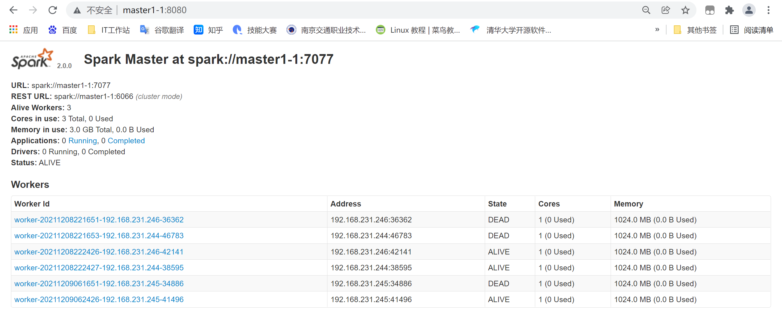 export JAVA_HOME=/usr/local/src/jdk1.8.0_221 export HADOOP_HOME=/usr/local/hadoop export SCALA_HOME=/usr/local/src/scala export SPARK_MASTER_IP=master1-1 export SPARK_MASTER_PORT=7077 export SPARK_DIST_CLASSPATH=$(/usr/local/hadoop/bin/hadoop classpath) export HADOOP_CONF_DIR=/usr/local/hadoop/etc/hadoop export SPARK_YARN_USER_ENV="CLASSPATH=/usr/local/hadoop/etc/hadoop" export YARN_CONF_DIR=/usr/local/hadoop/etc/hadoop export SPARK_DAEMON_JAVA_OPTS="-Dspark.deploy.recoveryMode=ZOOKEEPER -Dspark.deploy.zookeeper.url=master1-1:2181,slave1-1:2181,slave1-2:2181 -Dspark.deploy.zookeeper.dir=/spark"