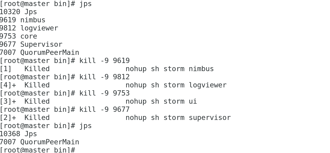 注:对于storm的进程只有使用kill命令来结束进程这一种方式