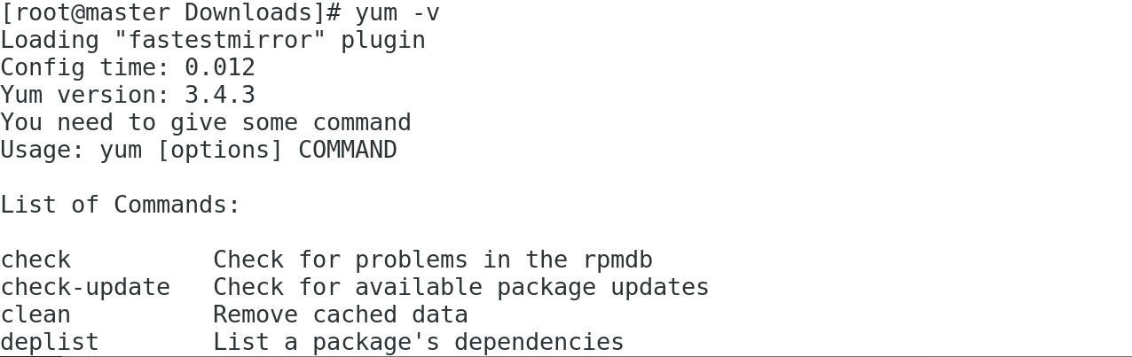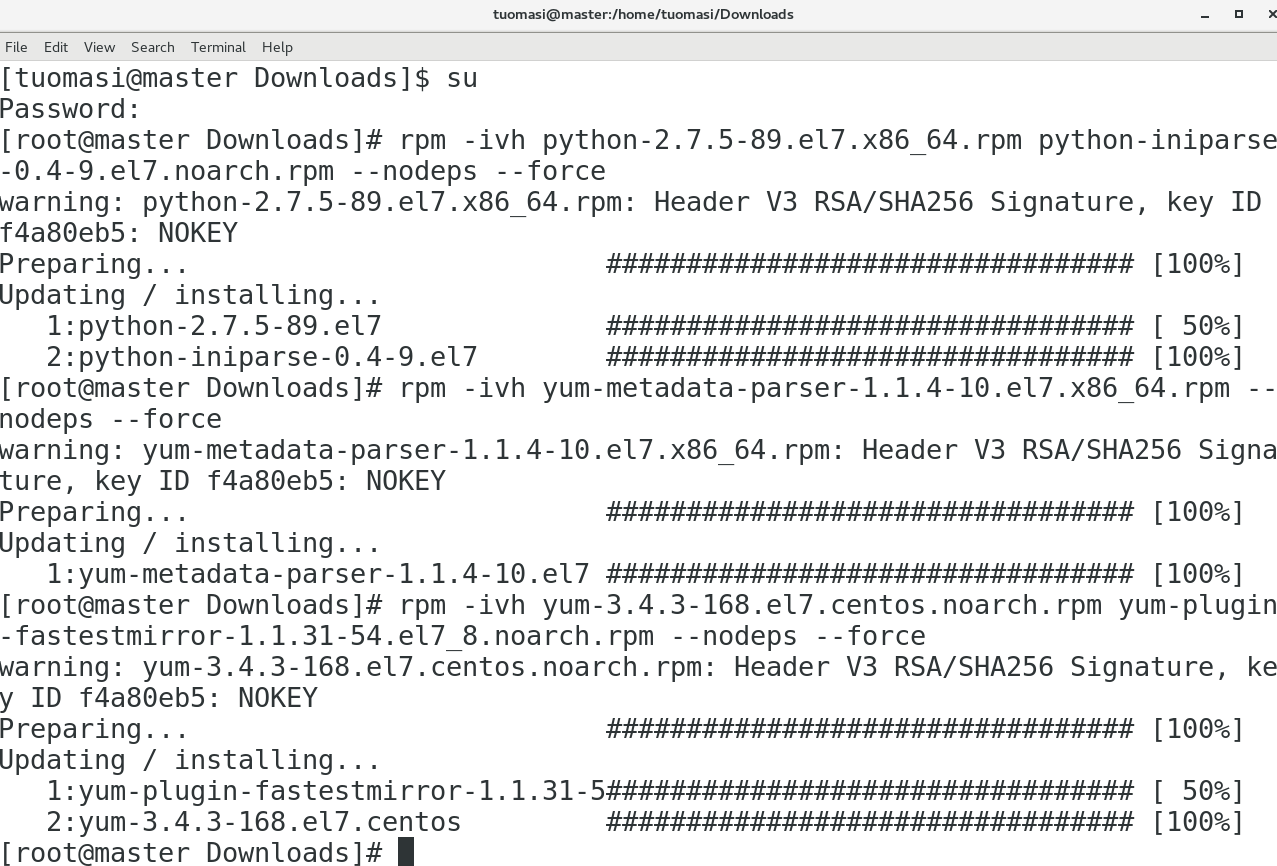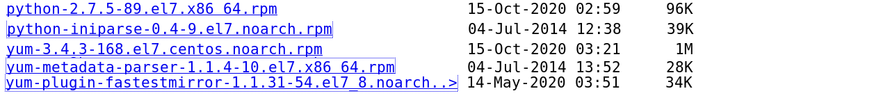 rpm -ivh yum-3.4.3-168.el7.centos.noarch.rpm yum-plugin-fastestmirror-1.1.31-54.el7_8.noarch.rpm --nodeps --force