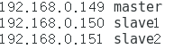 准备:共三台虚拟机,分别为master、slave1、slave2,完成如下配置操作。