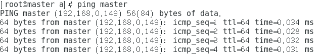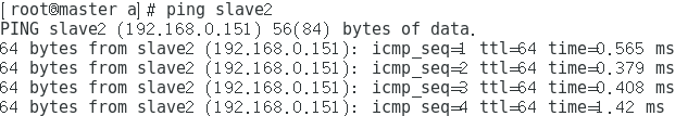 (5)测试集群中各个节点之间的互通性(这里使用“ping”命令进行测试),如图所示。