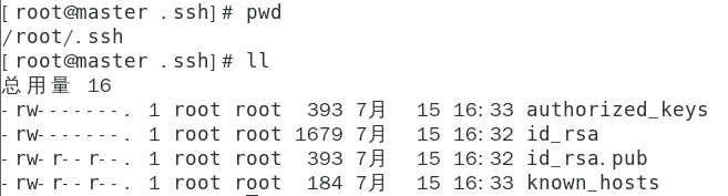 进入生成的密钥存储路径/root/.ssh查看生成的密钥文件。
