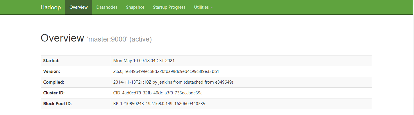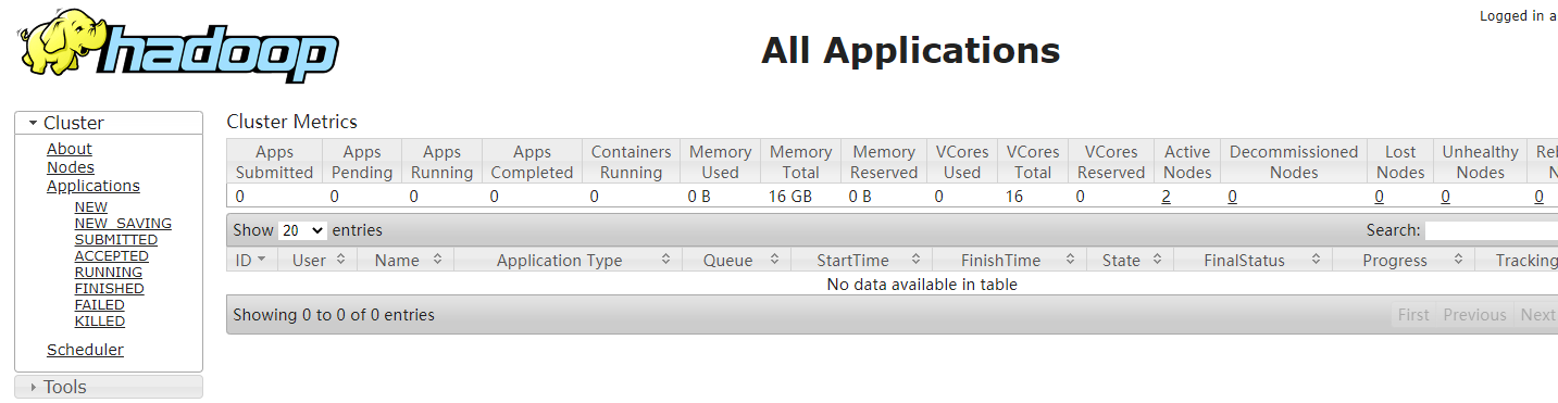 注意:如果在windows的浏览器中测试,需要保证该windows计算机可以正常访问到虚拟机中的相关计算机,并且需要修改windows计算机的hosts文件,实现master主机名与相应IP地址的映射,或者将“http://master:8088”中master修改为对应的IP地址进行测试。