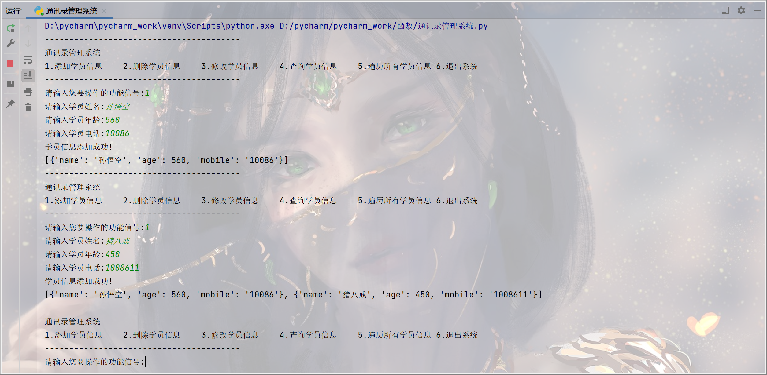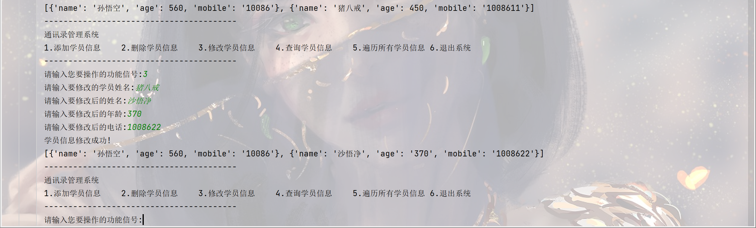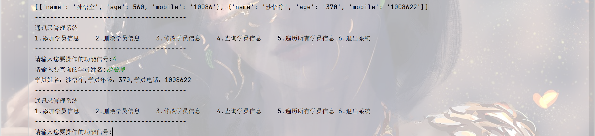 十八、通讯录管理系统Python版(对学生的增加,删除,修改,查询,遍历所有学员信息,退出系统,六个功能的实现)