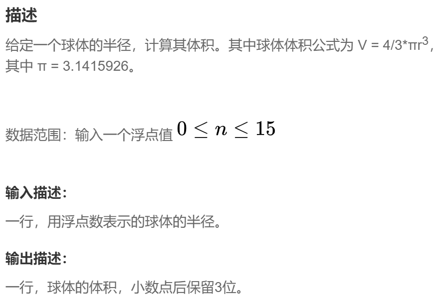 原题链接:计算球体的体积_牛客题霸_牛客网