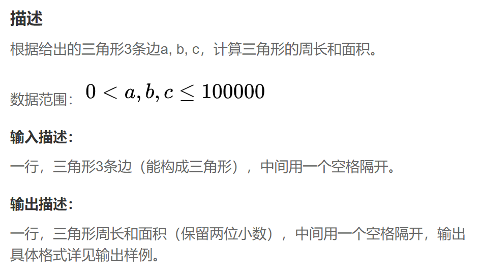 原题链接:计算三角形的周长和面积_牛客题霸_牛客网